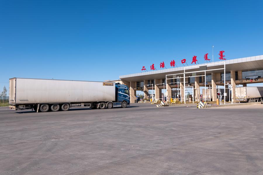 A truck passes through the Erenhot Port in Erenhot, north China's Inner Mongolia Autonomous Region, Sept. 11, 2024. (Xinhua/Ren Yanyi)