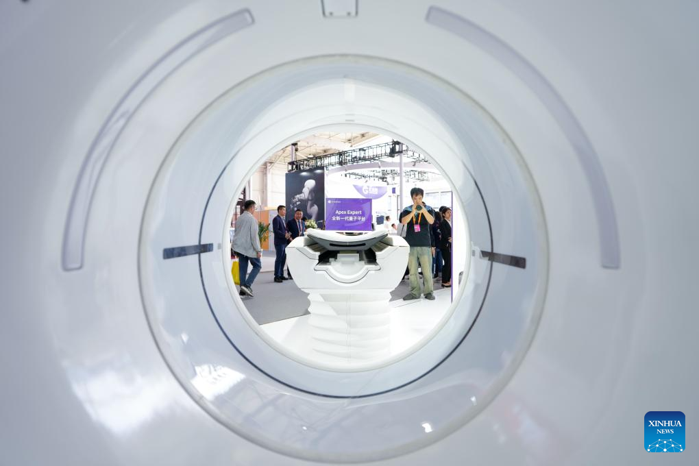 People visit the booth of GE HealthCare during the 2024 China International Fair for Trade in Services (CIFTIS) at the Shougang Park in Beijing, capital of China, Sept. 12, 2024. Themed "Global Services, Shared Prosperity," the 2024 CIFTIS opened at the China National Convention Center and the Shougang Park in Beijing on Thursday. (Xinhua/Ju Huanzong)