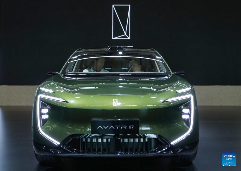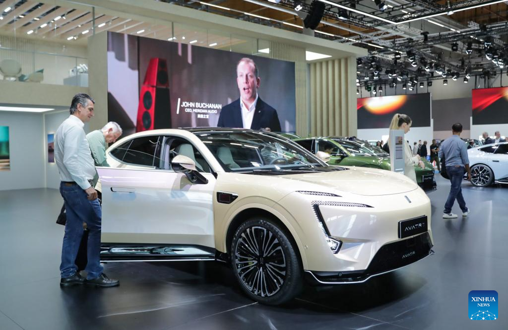People visit the booth of AVATR at the Automechanika in Frankfurt, Germany, Sept. 11, 2024. A leading trade fair for the aftermarket sector of the auto industry, Automechanika, kicked off on Tuesday, highlighting electrification and sustainability.