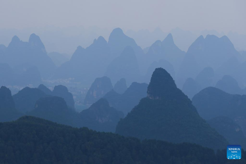 This photo taken from the Ruyi Peak cableway scenic area shows the Karst landscape in Yangshuo, Guilin, south China's Guangxi Zhuang Autonomous Region, Sept. 12, 2024. (Xinhua/Zheng Huansong)