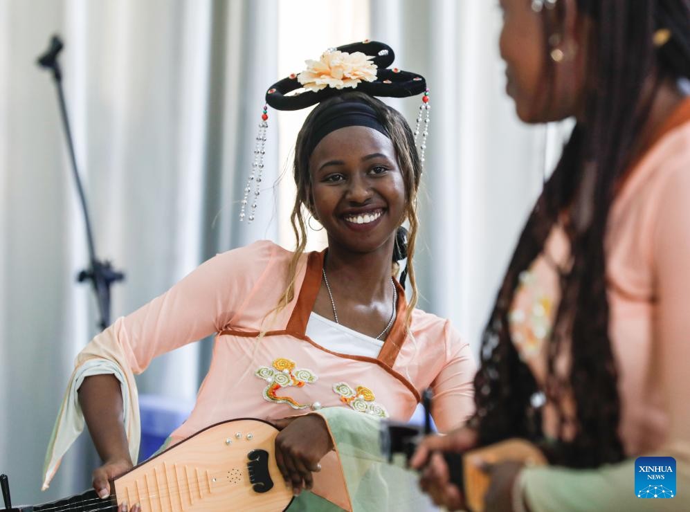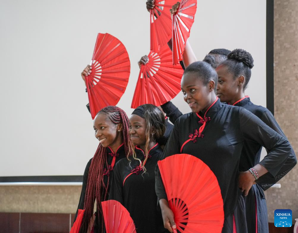 Students from the Confucius Institute at the University of Nairobi perform during a Mid-Autumn Festival celebration in Nairobi, Kenya, on Sept. 13, 2024. Africa Star Railway Operation Company (Afristar), the operator of Kenya's Standard Gauge Railway (SGR), and the Confucius Institute at the University of Nairobi, Kenya's oldest university, on Friday partnered to host the upcoming Mid-Autumn Festival, one of China's most important traditional holidays. (Xinhua/Li Yahui)