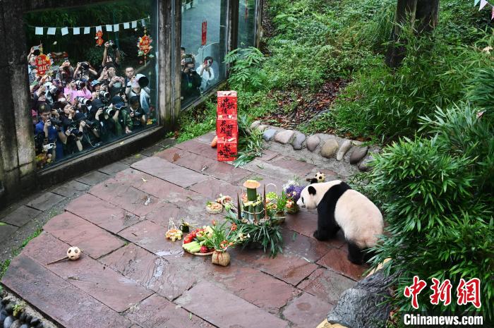 Xiang Xiang, a female giant panda born in the Ueno Zoo in Japan in 2017 and returned to China in 2023, also received its exclusive "mooncakes", "birthday cake", as well as other gifts.