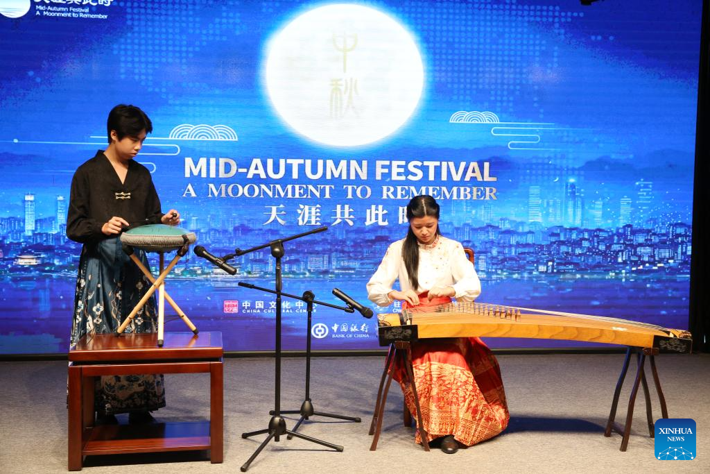 Students perform during an event to celebrate the upcoming Mid-Autumn Festival at the China Cultural Center in Yangon, Myanmar, Sept. 14, 2024. (Xinhua/Myo Kyaw Soe)