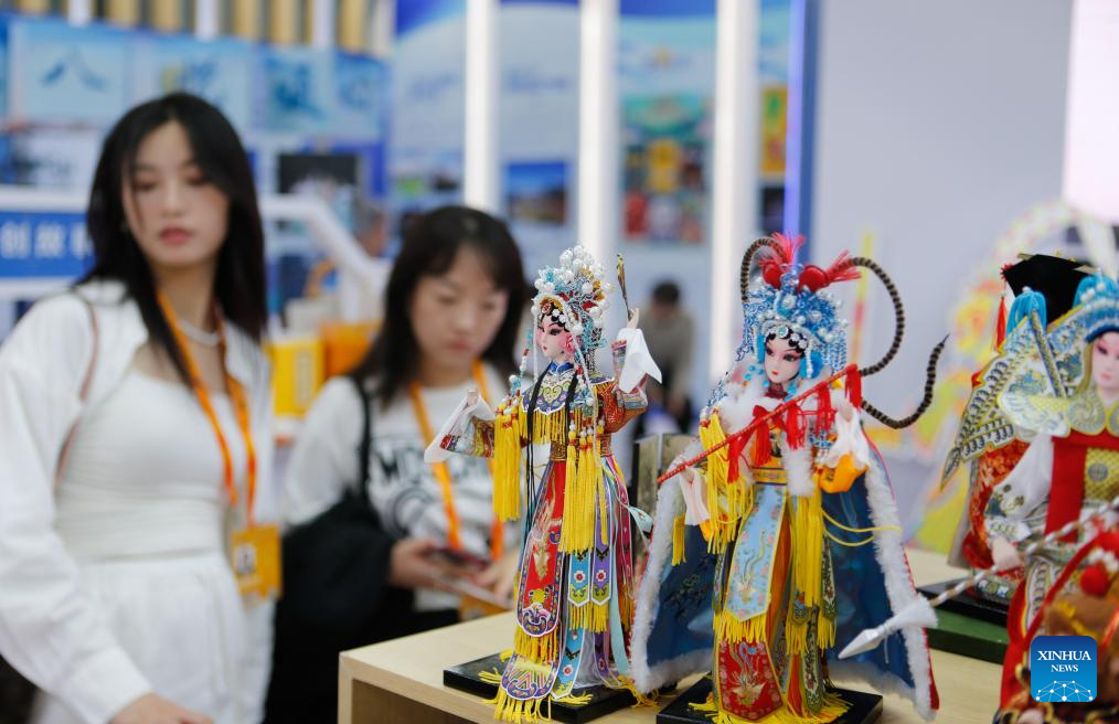 Silk figurines are pictured during the 2024 China International Fair for Trade in Services (CIFTIS) in the Cultural &Tourism Service thematic exhibition area at the Shougang Park in Beijing, capital of China, Sept. 16, 2024. The Cultural &Tourism Service thematic exhibition area of this year's CIFTIS reflects the integration of technology and culture. The exhibitions enable multidimensional presentations with new technologies such as immersive digital spaces, virtual reality (VR), augmented reality (AR), and holographic projection. (Xinhua/Ding Hongfa)