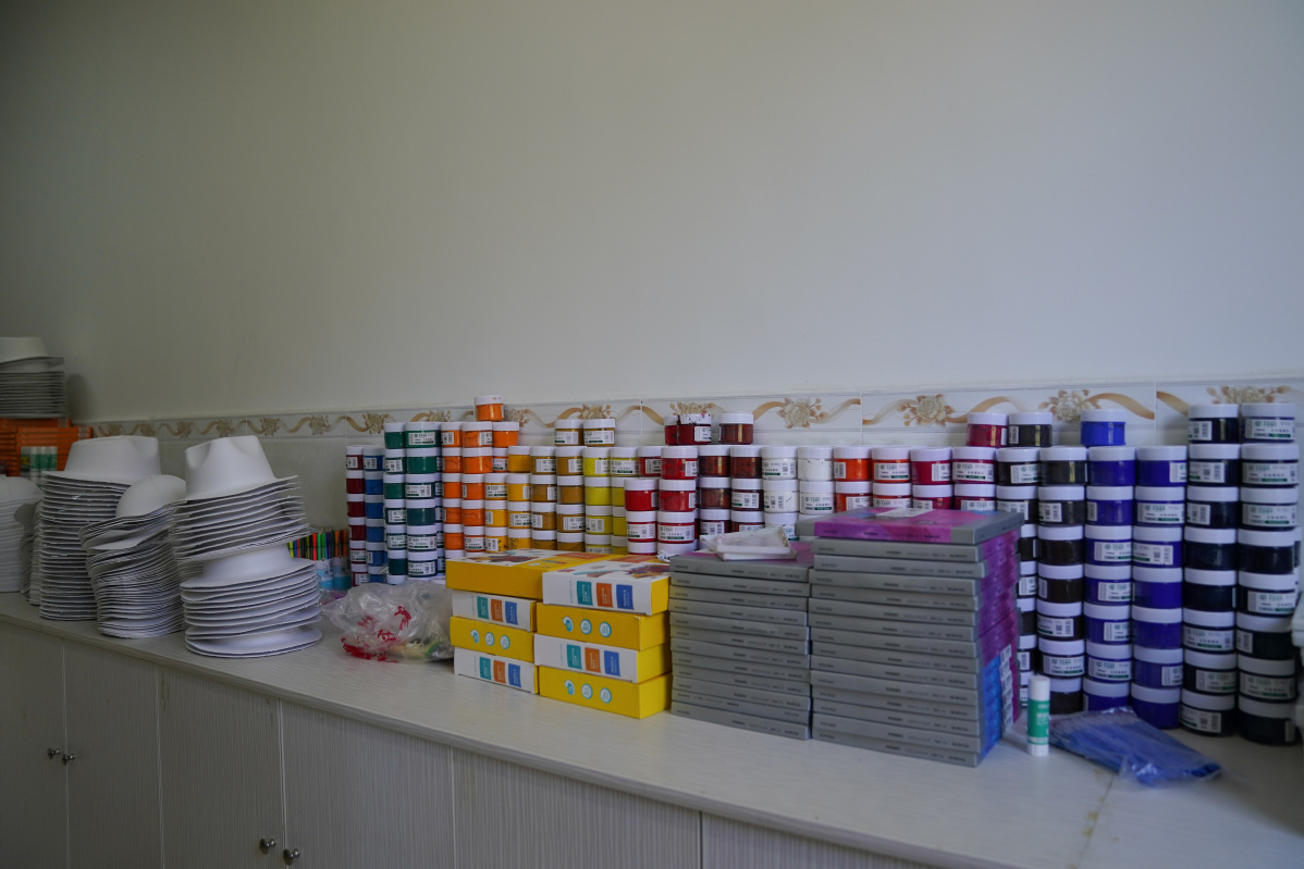 Art supplies are stored in the art classroom of an elementary school at the Gala township of Garze Tibetan autonomous prefecture, Sichuan province. (Photo/Xinhua)