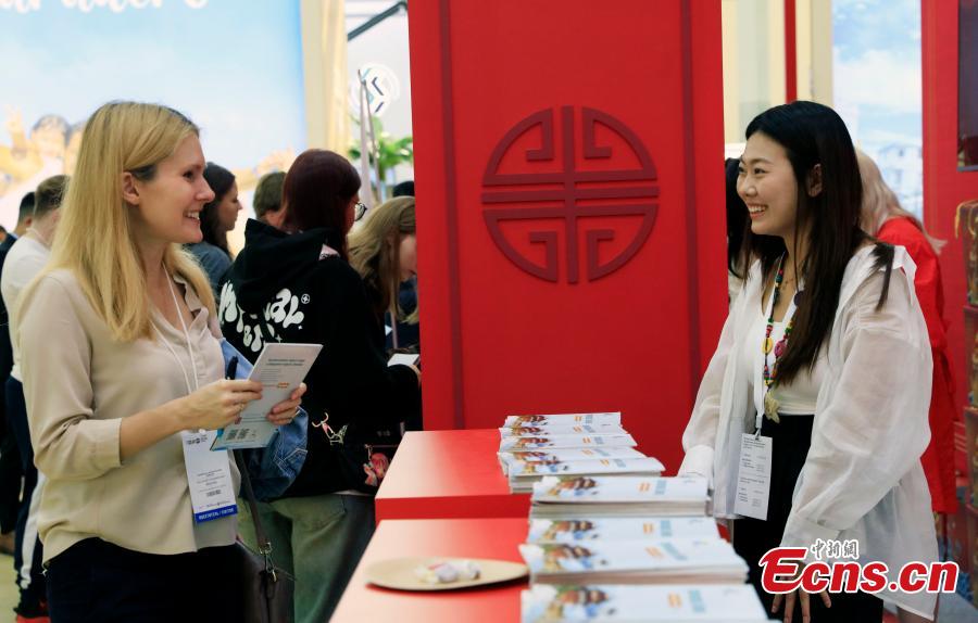 People visit the China booth during the 30th international trade fair for travel & tourism in Moscow, Russia, Sept 17, 2024. (Photo: China News Service/Tian Bing)