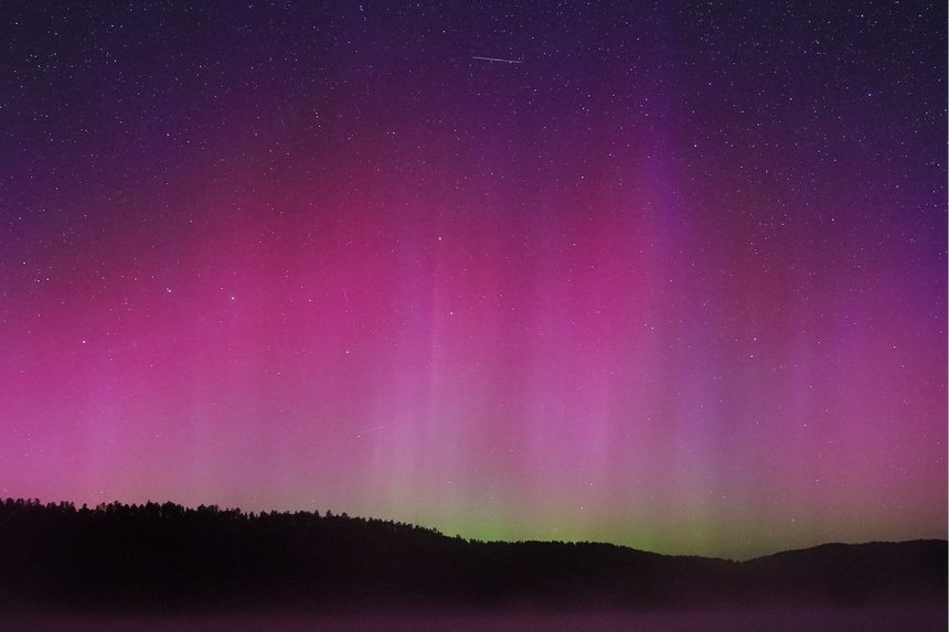 A spectacular display of red and green aurora lit up the pre-dawn sky on Sept. 13 in Mohe, China's northernmost city.