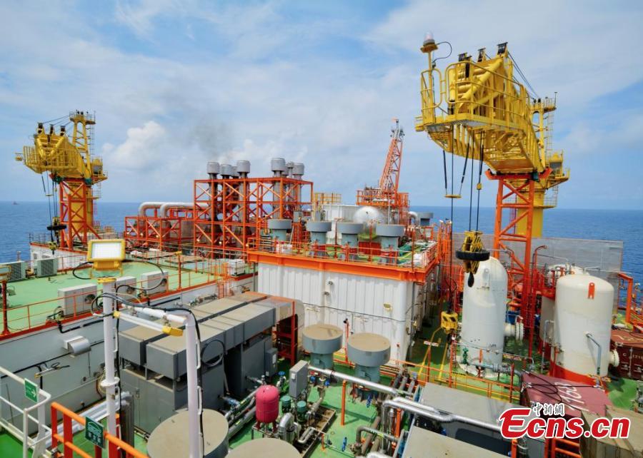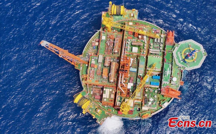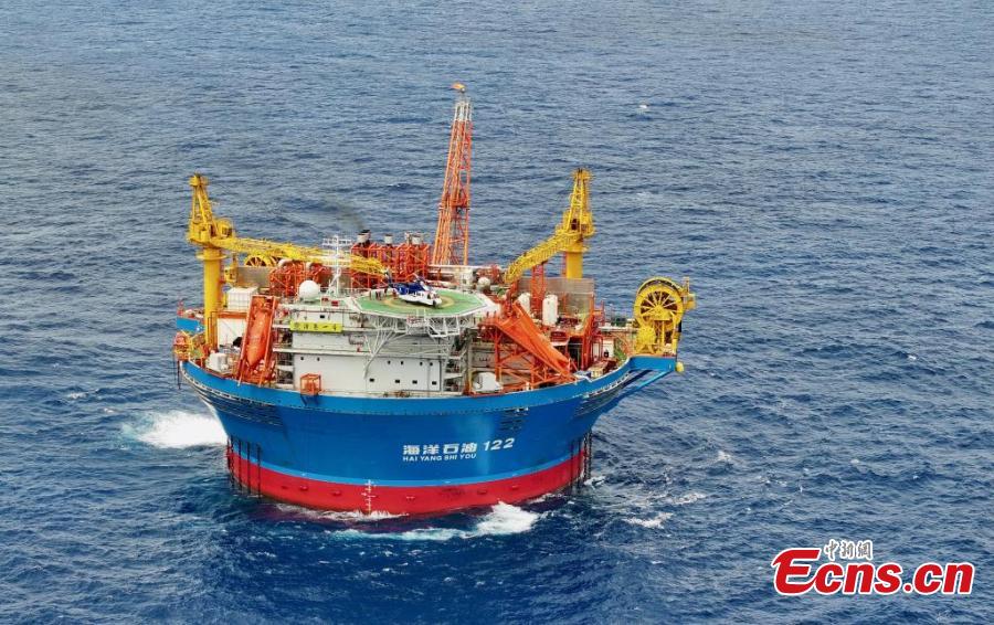 China's self-developed cylindrical floating, production, storage, and offloading (FPSO) facility Haikui 1, a project designed for the Liuhua 11-1/4-1 oilfield secondary development, is put into operation in the South China Sea, Sept. 19, 2024. (Photo: China News Service/Chen Wen)