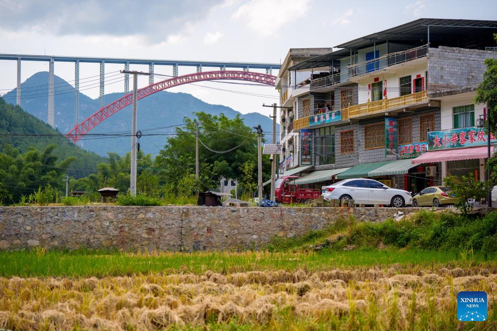 This photo shows a homestay near the Daxiaojing grand bridge in southwest China's Guizhou Province, Sept. 5, 2024. (Xinhua/Ou Dongqu)?