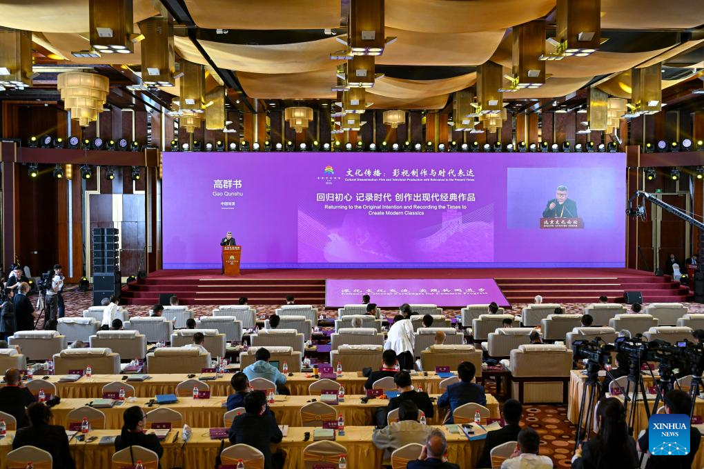 This photo shows a parallel forum themed on "Cultural Dissemination: Film and Television Production with Relevance to the Present Times" during the 2024 Beijing Culture Forum in Beijing, capital of China, Sept. 20, 2024. (Xinhua/Zhang Cheng)