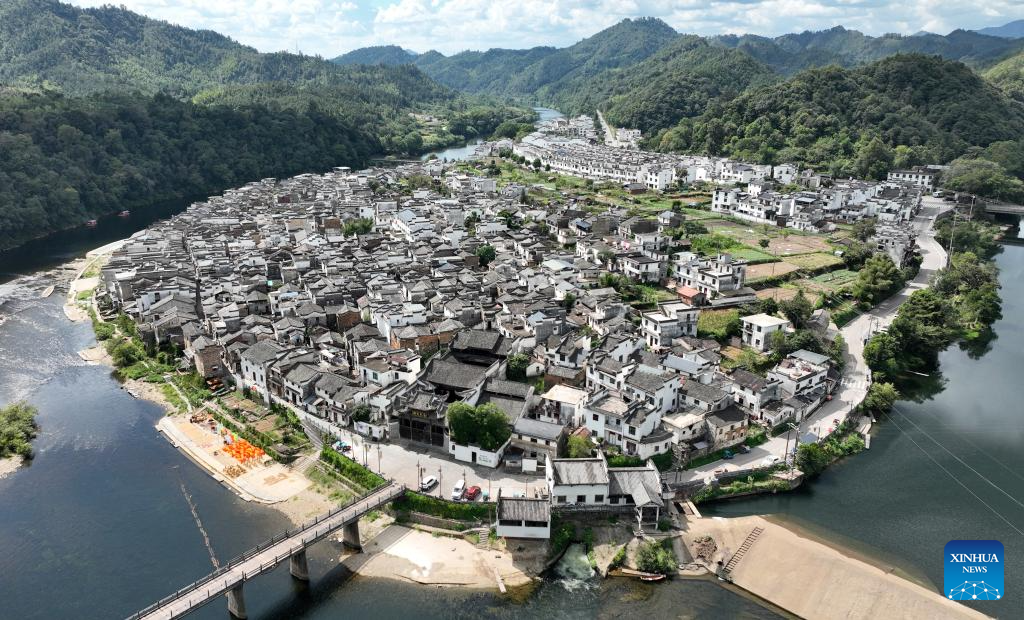 An aerial drone photo taken on Sept. 20, 2024 shows Wangkou Village of Wuyuan County, east China's Jiangxi Province. (Xinhua/Wan Xiang)