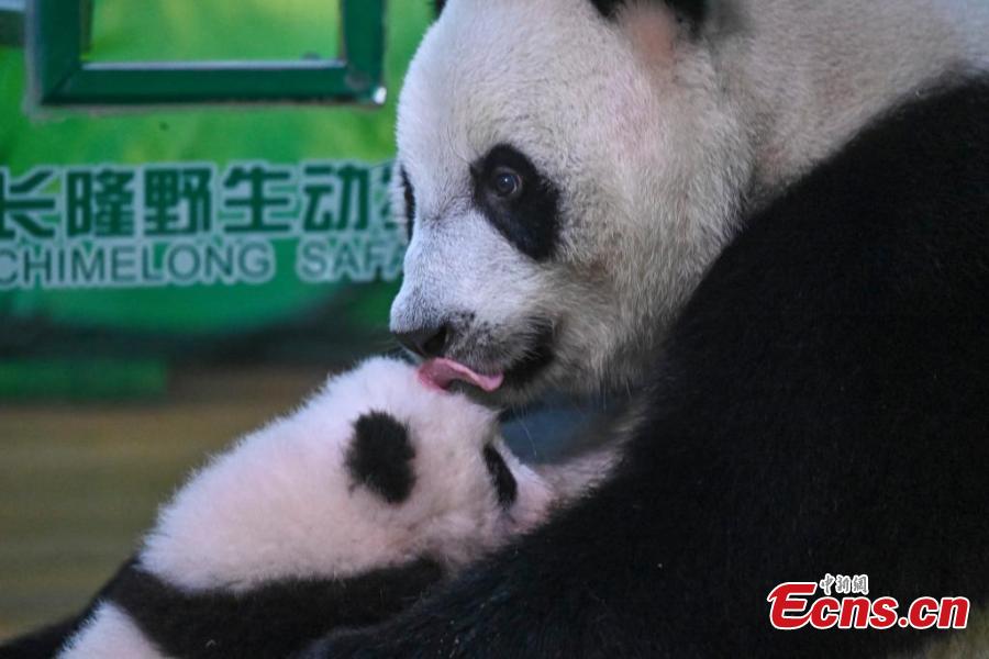 Giant panda cub nicknamed "Mei Zhu" lives with her mother Meng Meng at the Guangzhou Chimelong Safari Park in Guangzhou, south China's Guangdong Province, Sept. 21, 2024. (Photo: China News Service/Chen Jimin)