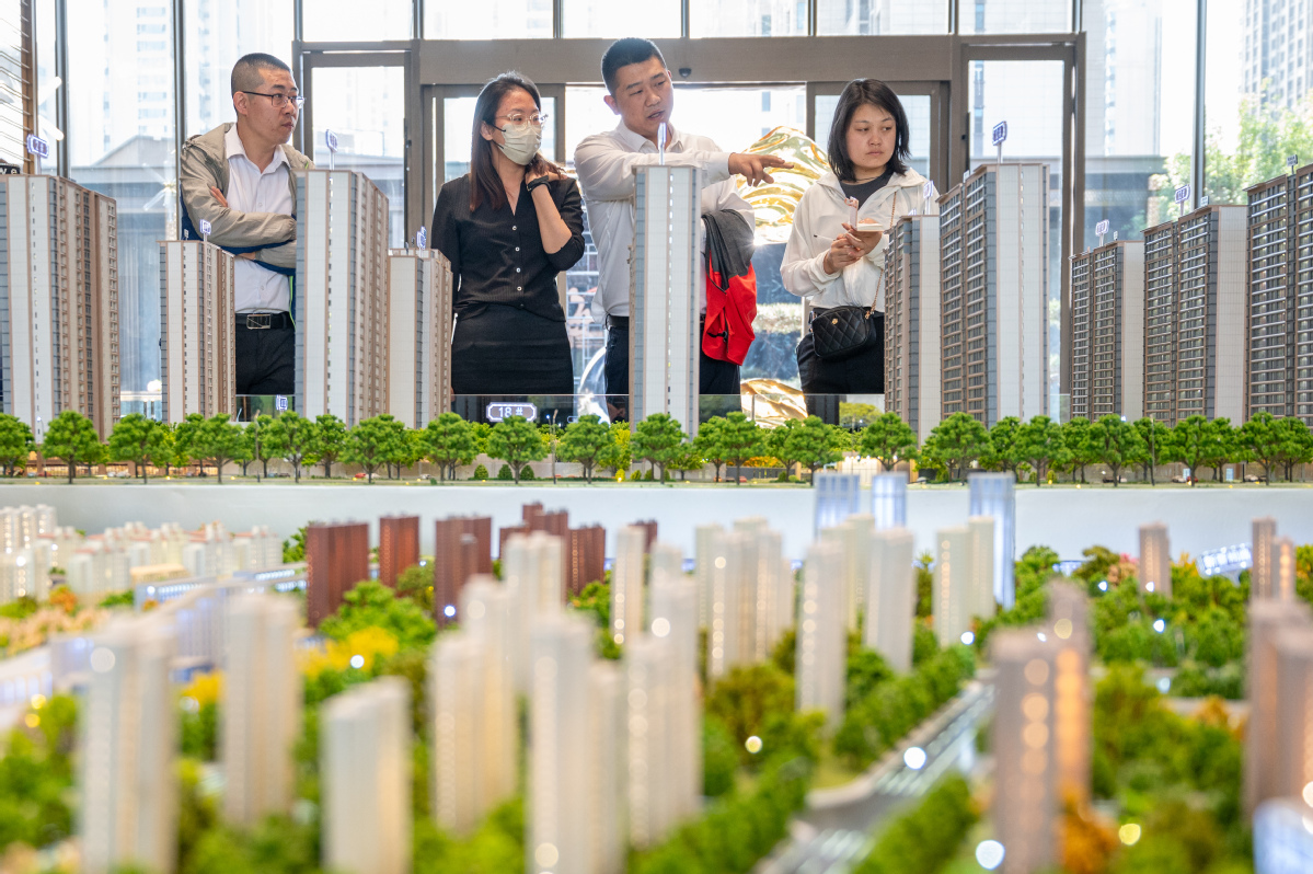 Potential homebuyers look at a property model in Taiyuan, Shanxi province. (WEI LIANG/CHINA NEWS SERVICE)