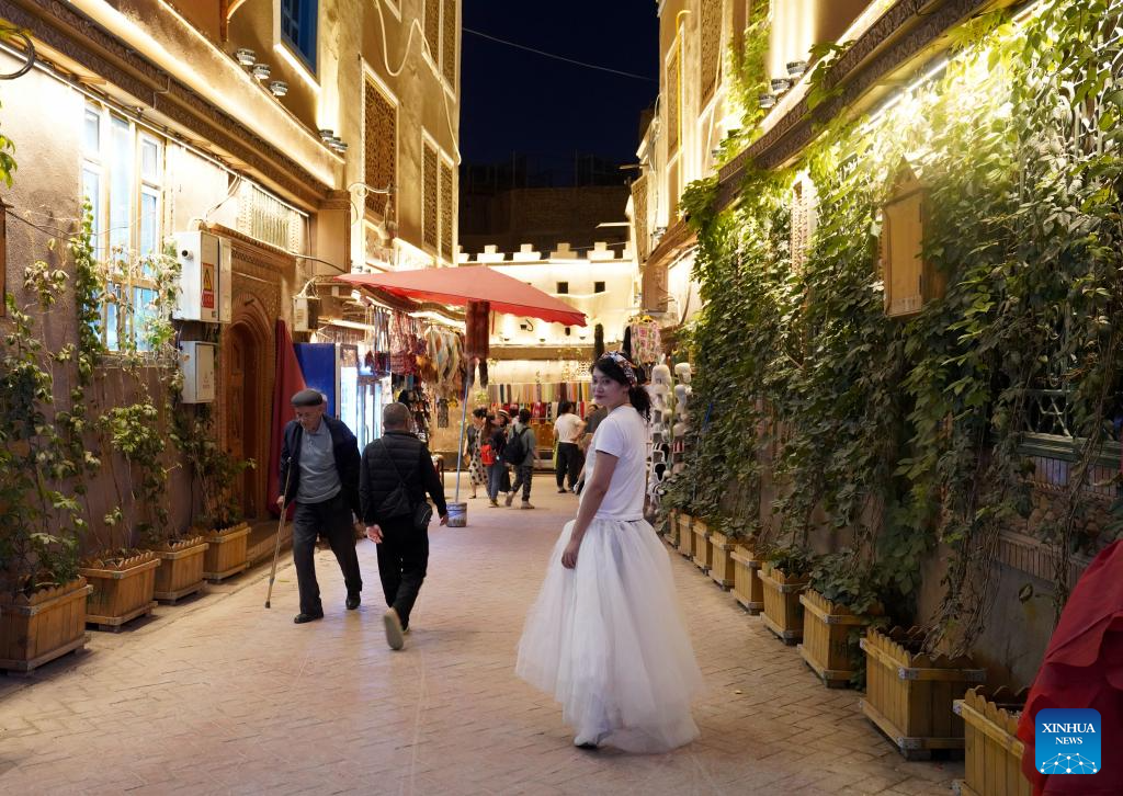Local residents enjoy their leisure time in the ancient city of Kashgar, northwest China's Xinjiang Uygur Autonomous Region, Sept. 19, 2024. (Xinhua/Zhao Yusi)