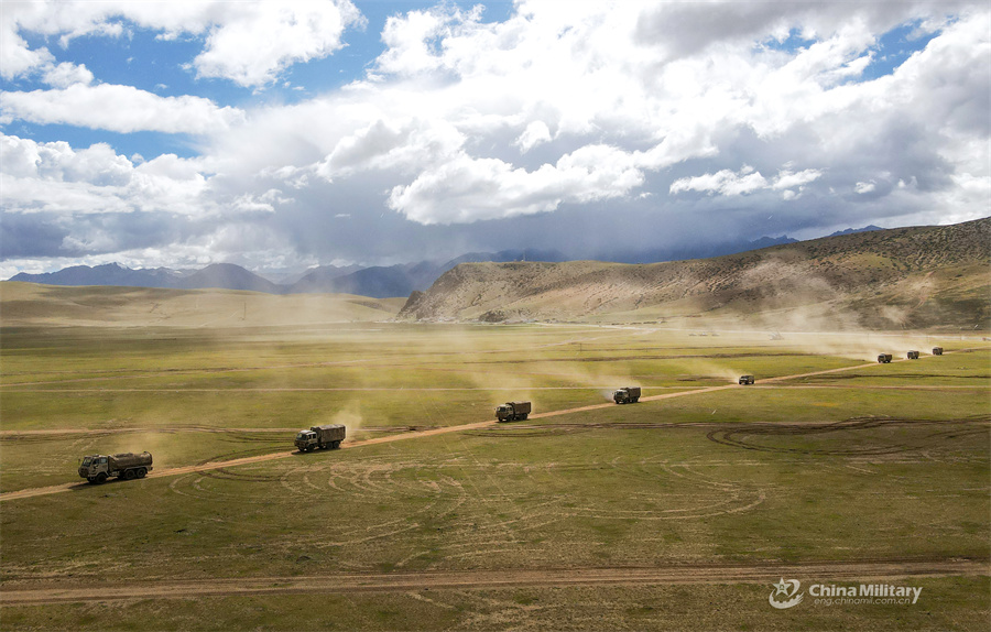 Vehicles attached to a brigade of the Chinese PLA Xizang Military Command conduct maneuver training in unfamiliar area on August 22, 2024. (eng.chinamil.com.cn/Photo by Hu Qiwu)