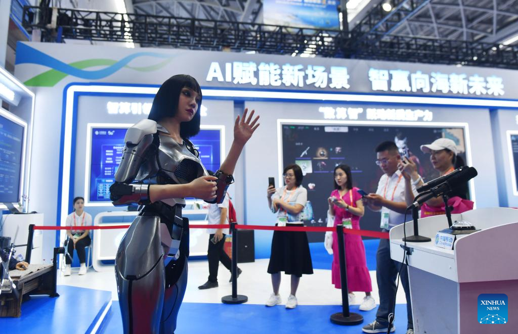 An interactive robot is pictured at the 21st China-ASEAN Expo in Nanning, south China's Guangxi Zhuang Autonomous Region, Sept. 26, 2024. New technologies and applications such as intelligent robots, unmanned vehicles and AI applications are gaining popularity at the ongoing China-ASEAN Expo in Nanning. (Xinhua/Huang Xiaobang)