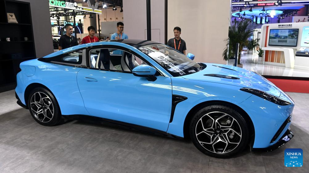 An electric car is on display at the 21st China-ASEAN Expo in Nanning, south China's Guangxi Zhuang Autonomous Region, Sept. 26, 2024. New technologies and applications such as intelligent robots, unmanned vehicles and AI applications are gaining popularity at the ongoing China-ASEAN Expo in Nanning. (Xinhua/Zhang Ailin)