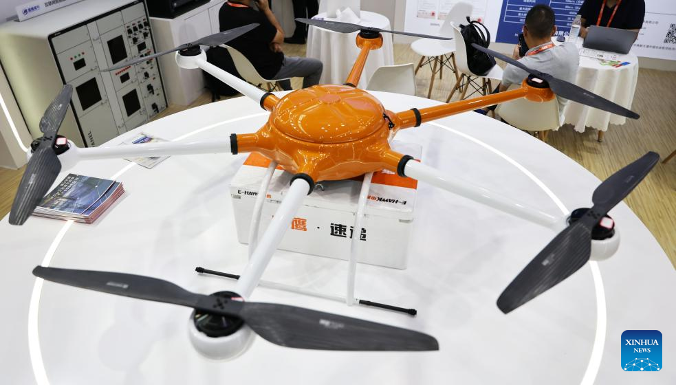 A delivery drone is pictured at the 21st China-ASEAN Expo in Nanning, south China's Guangxi Zhuang Autonomous Region, Sept. 25, 2024. New technologies and applications such as intelligent robots, unmanned vehicles and AI applications are gaining popularity at the ongoing China-ASEAN Expo in Nanning. (Xinhua/Jin Haoyuan)