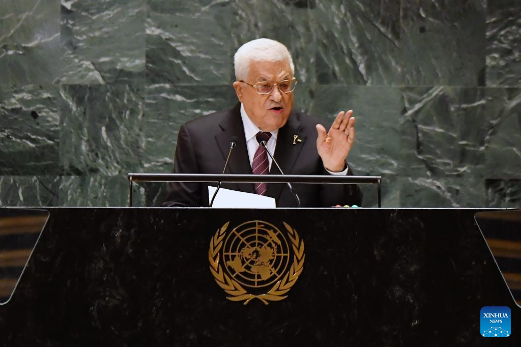 UNITED NATIONS, Sept. 26 (Xinhua) -- Palestinian President Mahmoud Abbas received a long round of applause as he addressed the United Nations General Assembly (UNGA) on Thursday, insisting that "we will not leave, Palestine is our homeland," and "if anyone were to leave it would be the occupier."
