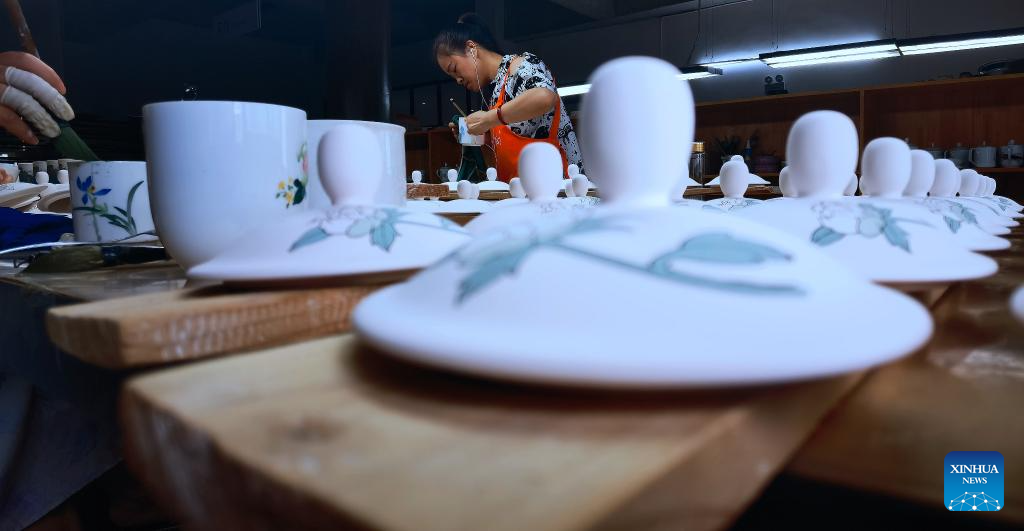A worker makes ceramics at a company in Liling City, central China's Hunan Province, Sept. 27, 2024. (Xinhua/Zhao Zhongzhi)