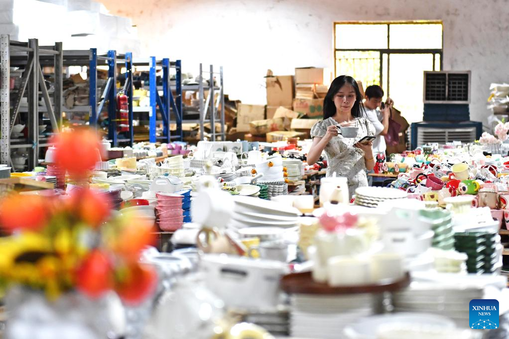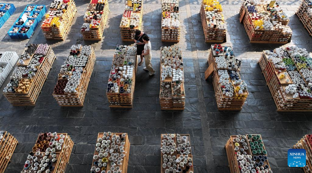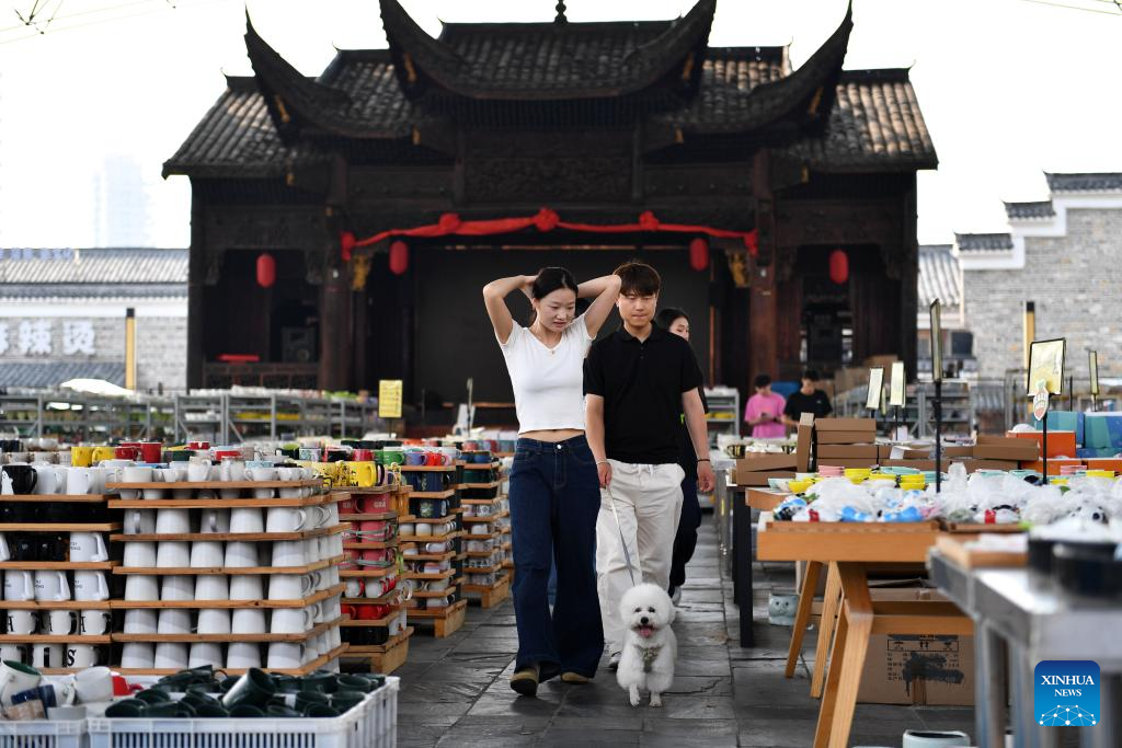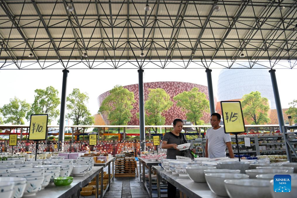 Tourists visit a ceramics low-price shopping area in Liling City, central China's Hunan Province, Sept. 26, 2024. (Xinhua/Chen Zhenhai)
