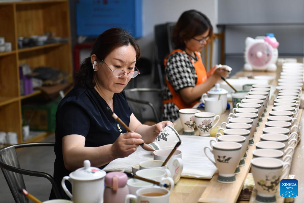 Workers make ceramics at a company in Liling City, central China's Hunan Province, Sept. 27, 2024. (Xinhua/Zhao Zhongzhi)