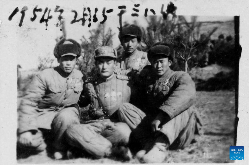 This file photo taken on Feb. 15, 1954 shows Huang Zongde (1st R) posing with his comrades in the Democratic People's Republic of Korea. (Xinhua)
