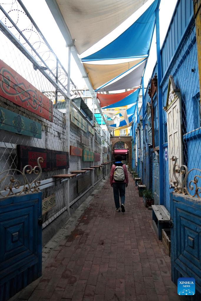 A tourist walks on the Liuxing Street in Yining City, Ili Kazak Autonomous Prefecture, northwest China's Xinjiang Uygur Autonomous Region, Sept. 27, 2024. (Xinhua/Zhao Yusi)