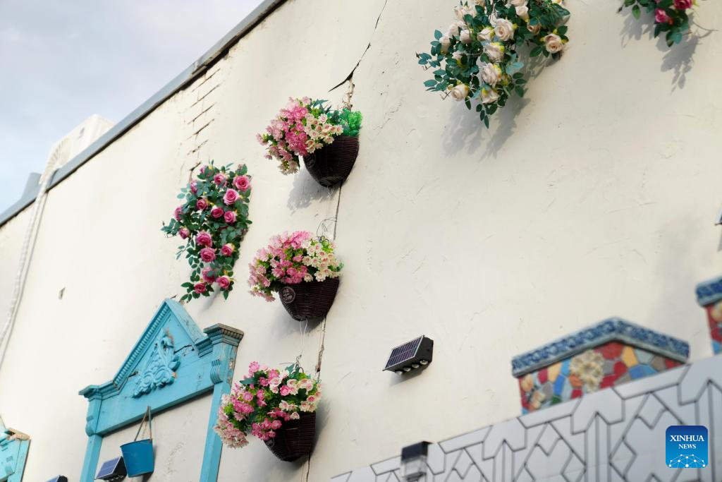 This photo taken on Sept. 27, 2024 shows decorations of a store on the Liuxing Street in Yining City, Ili Kazak Autonomous Prefecture, northwest China's Xinjiang Uygur Autonomous Region. (Xinhua/Zhao Yusi)