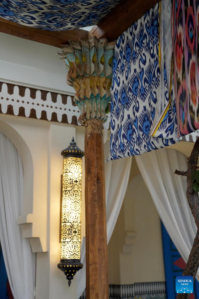 This photo taken on Sept. 27, 2024 shows decorations of a store on the Liuxing Street in Yining City, Ili Kazak Autonomous Prefecture, northwest China's Xinjiang Uygur Autonomous Region. (Xinhua/Zhang Chaofan)