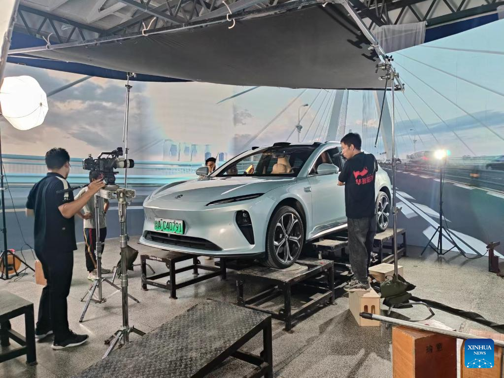 This undated photo shows the filming site of a micro drama at the Shanghai International Short Video Center in Shanghai, east China. (Xinhua)