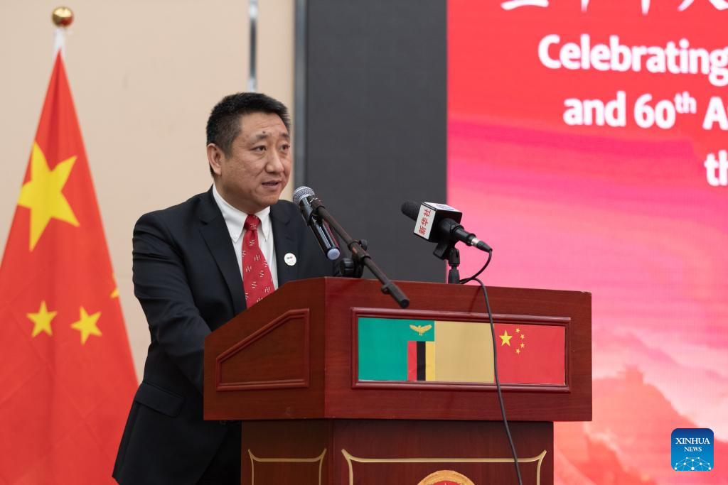 LUSAKA, Sept. 27 (Xinhua) -- The Chinese Embassy in Zambia hosted a reception on Thursday in Lusaka, the capital, celebrating the 75th anniversary of the founding of the People's Republic of China. This event also marked the 60th anniversary of diplomatic relations between China and Zambia.