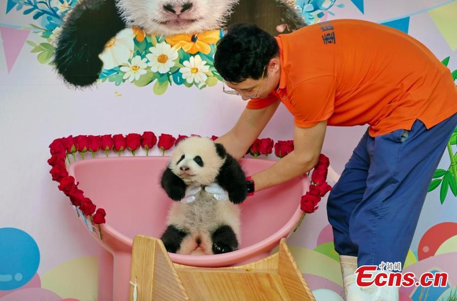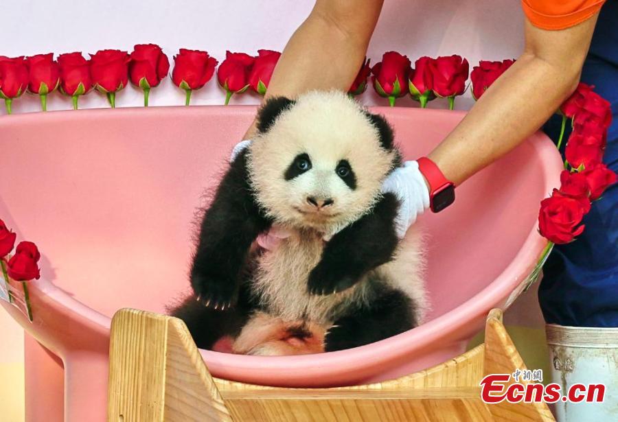Giant panda Hao Qi gave birth to the cub on June 28. The cub now weighs 5,805 grams.