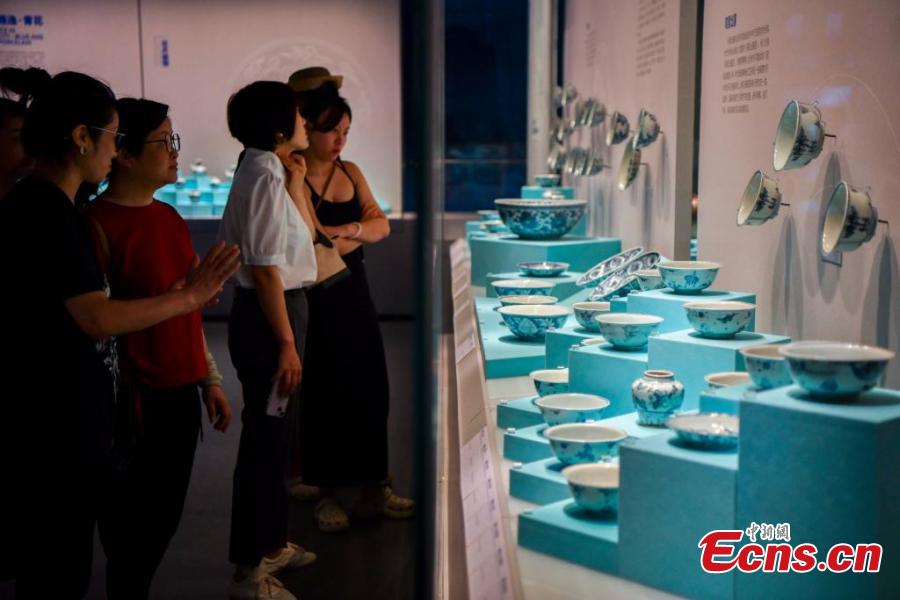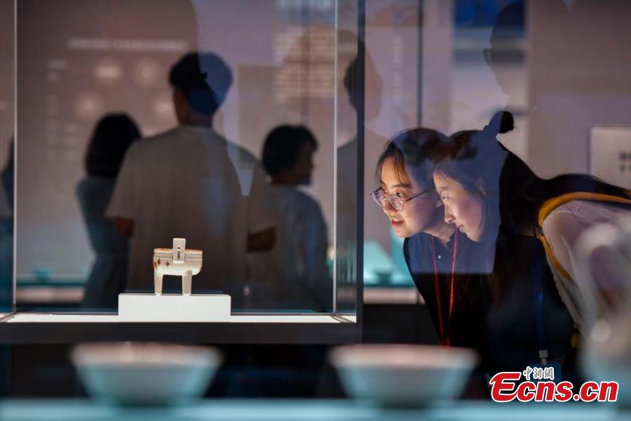 People visit an exhibition featuring relics retrieved from two ancient shipwrecks discovered in the South China Sea at the China (Hainan) Museum of the South China Sea in Qionghai, south China's Hainan Province, Sept. 27, 2024. (Photo: China News Service/Luo Yunfei)