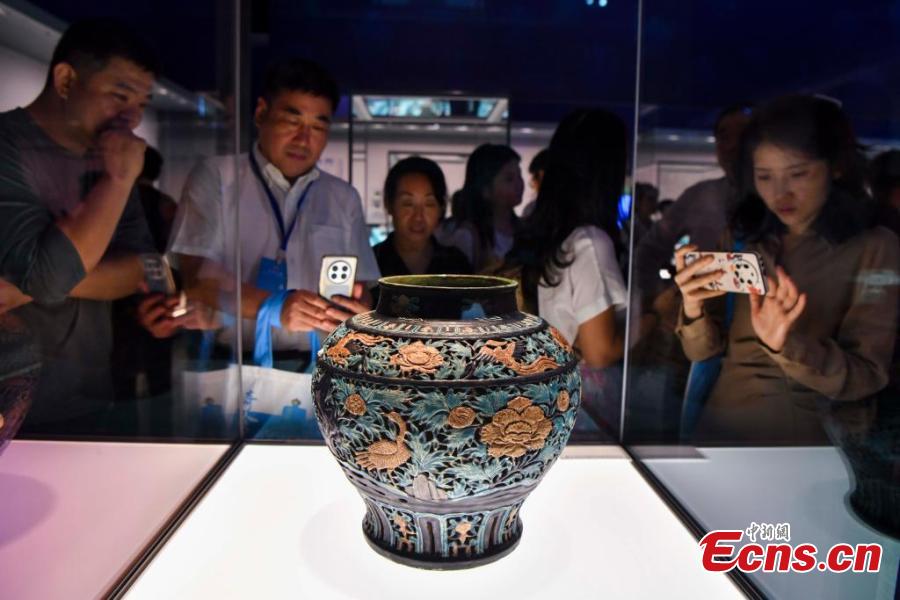 A relic retrieved from two ancient shipwrecks discovered in the South China Sea is on show at the China (Hainan) Museum of the South China Sea in Qionghai, south China's Hainan Province, Sept. 27, 2024. (Photo: China News Service/Luo Yunfei)