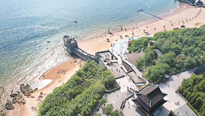 Aerial photo shows tourists sightseeing at the Laolongtou scenic area in Qinhuangdao, north China's Hebei Province. (Xinhua/Yang Shiyao)