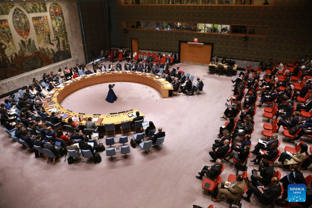 The UN Security Council holds an emergency session on the situation in the Middle East at the UN headquarters in New York, on Oct. 2, 2024. UN Secretary-General Antonio Guterres on Wednesday condemned Iran's missile attack against Israel on Tuesday. (Xinhua/Xie E)