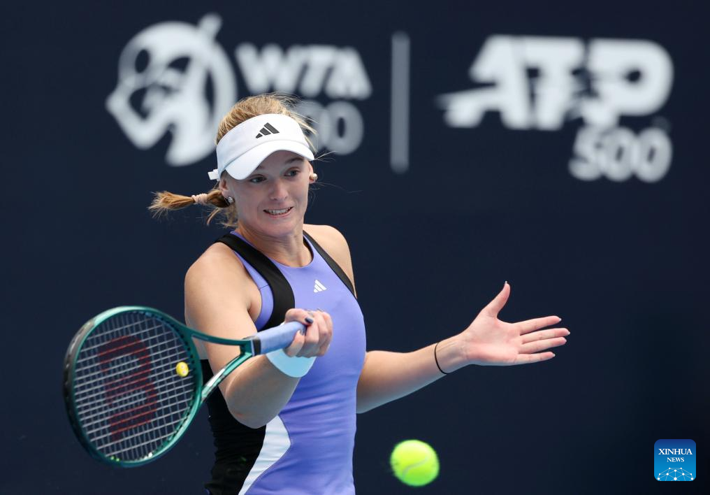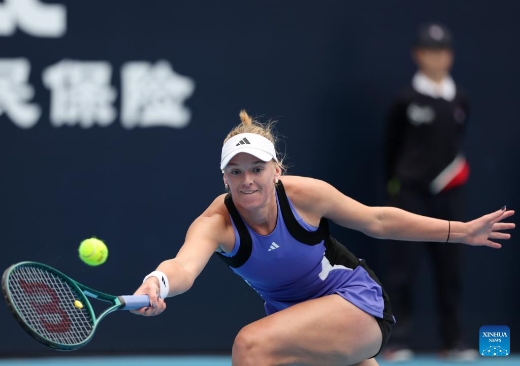 Ashlyn Krueger of the United States hits a return during the women's singles third round match against Aryna Sabalenka of Belarus at 2024 China Open tennis tournament in Beijing, capital of China, Sept. 30, 2024. (Xinhua/Zhang Chenlin)