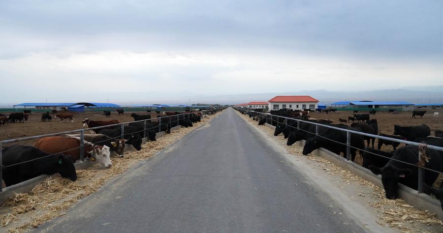 Cattle are pictured at an animal husbandry park in Bole City, northwest China's Xinjiang Uygur Autonomous Region, Sept. 25, 2024. (Xinhua/Zhao Yusi)