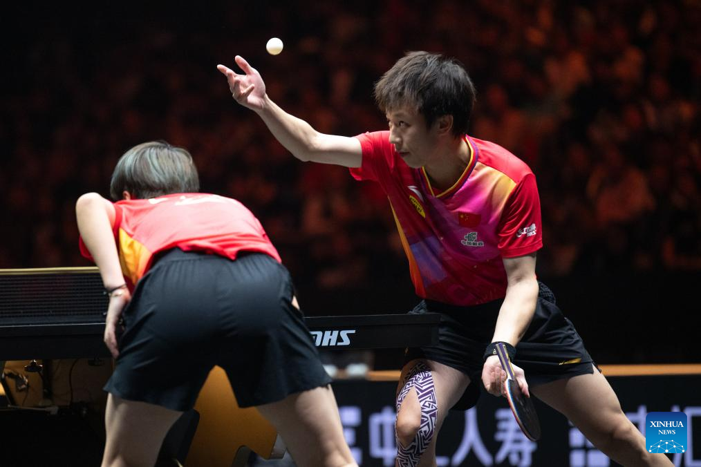 BEIJING, Oct. 4 (Xinhua) -- Second-seeded pair Lin Shidong and Kuai Man clinched an 11-5, 3-11, 11-5, 11-5 victory over Lin Gaoyuan and Wang Yidi in an all-Chinese mixed doubles final at the World Table Tennis (WTT) China Smash on Friday.