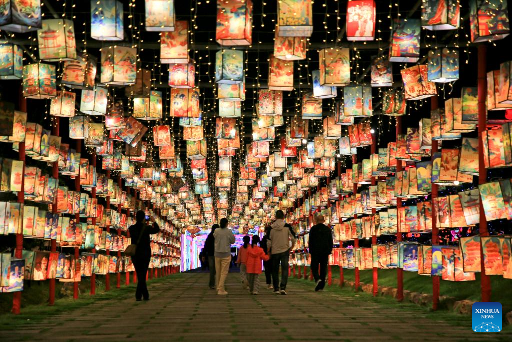 People enjoy a light show at the Beijing Garden Expo Park in Beijing, capital of China, Oct. 4, 2024. During the week-long National Day holiday starting on Oct. 1, Chinese people take a break to travel and enjoy leisure activities. Travel and holiday consumption have continued to boom, mirroring the vitality of Chinese economy. (Xinhua/Zhang Chenlin)