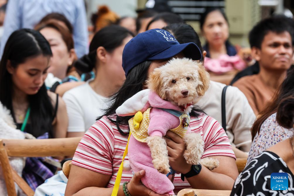 People and their costumed pet animals participate in a pet parade in Quezon City, the Philippines on Oct. 6, 2024. The pet parade was organized in celebration of the World Animal Day which is observed on Oct. 4 every year. (Xinhua/Rouelle Umali)