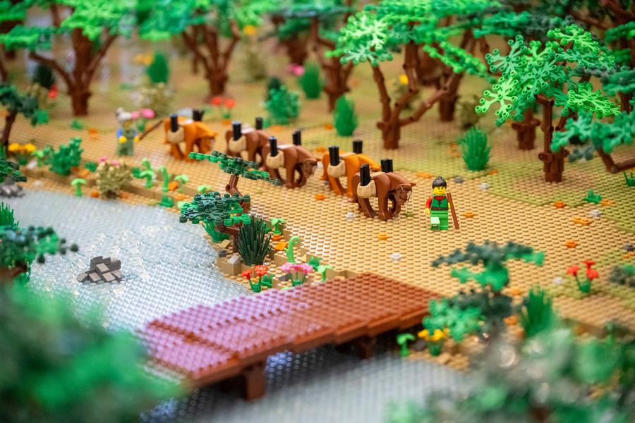Here a long scroll of the "Along the River During the Qingming Festival," an iconic painting of Northern Song Dynasty (960-1126), unfolded and has been on display, ingeniously constructed straight from lego bricks.