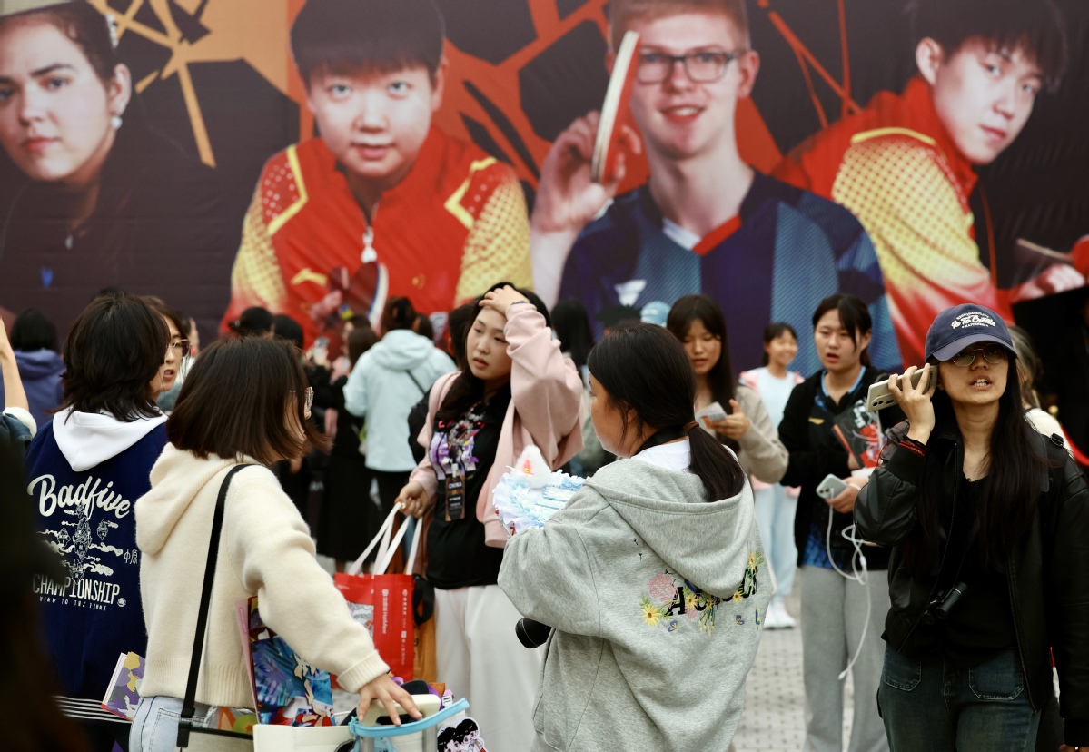 Visitors gather outside the World Table Tennis China Smash venue in Beijing on Sunday. WEI XIAOHAO/CHINA DAILY
