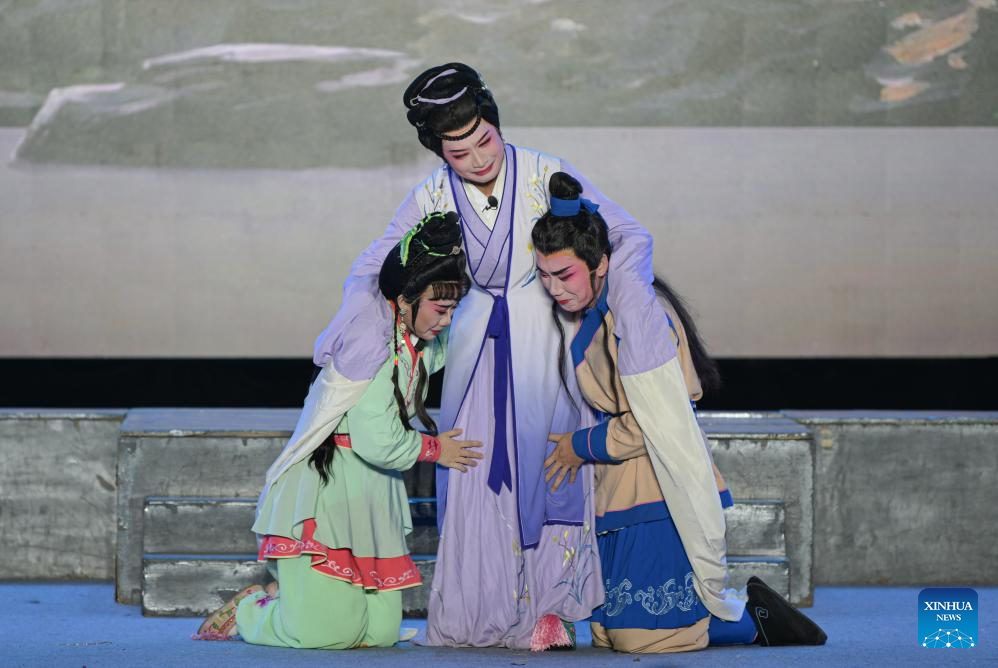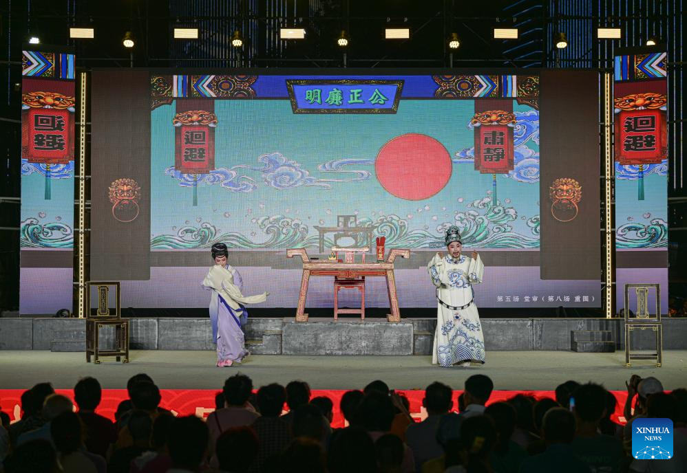 Actors stage Qiong Opera at the Evergreen Park in Haikou, south China's Hainan Province, Oct. 6, 2024. (Xinhua/Pu Xiaoxu)