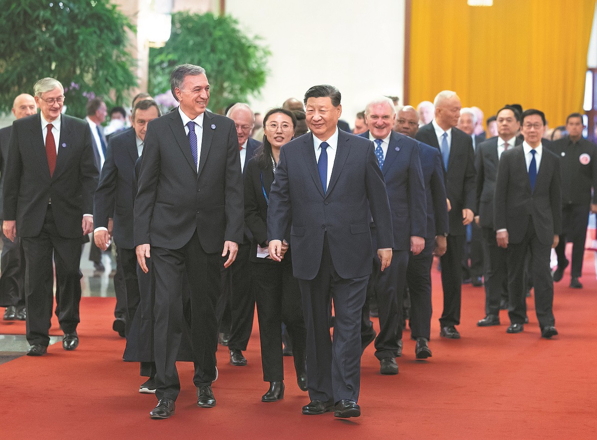 Xi reiterated the importance of upholding the common values of humanity — peace, development, fairness, justice, democracy and freedom — and advocating for a multipolar world that is equal and orderly, as well as for inclusive and equitable economic globalization.
