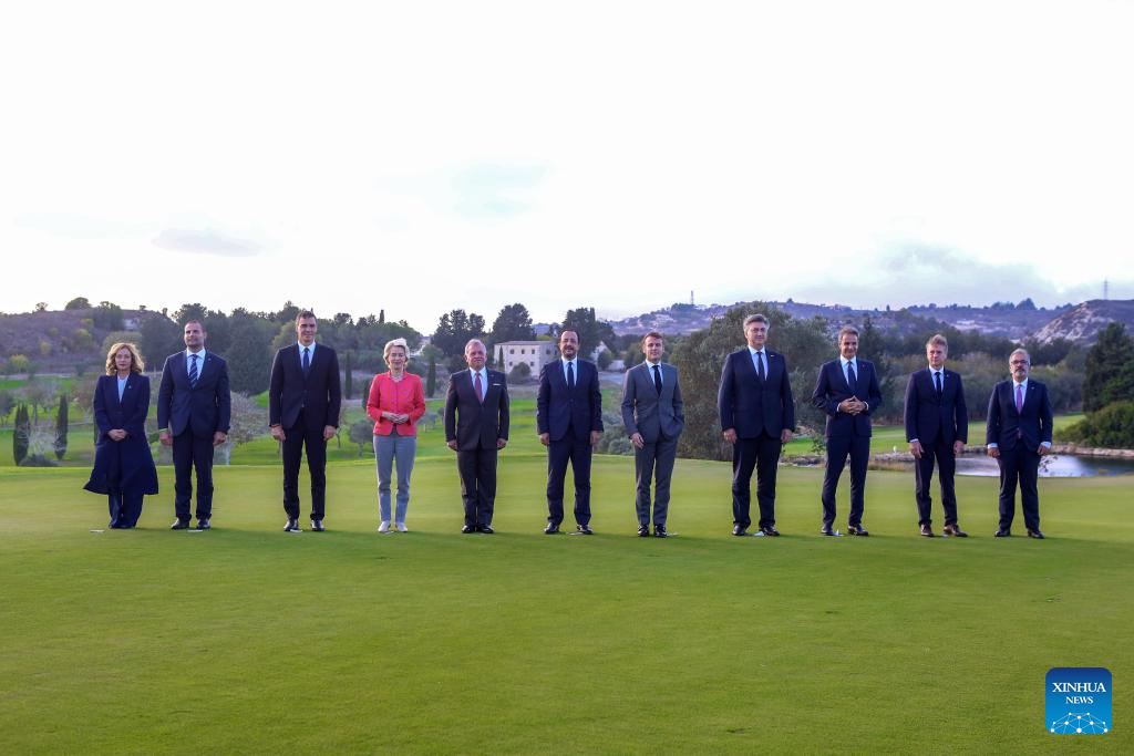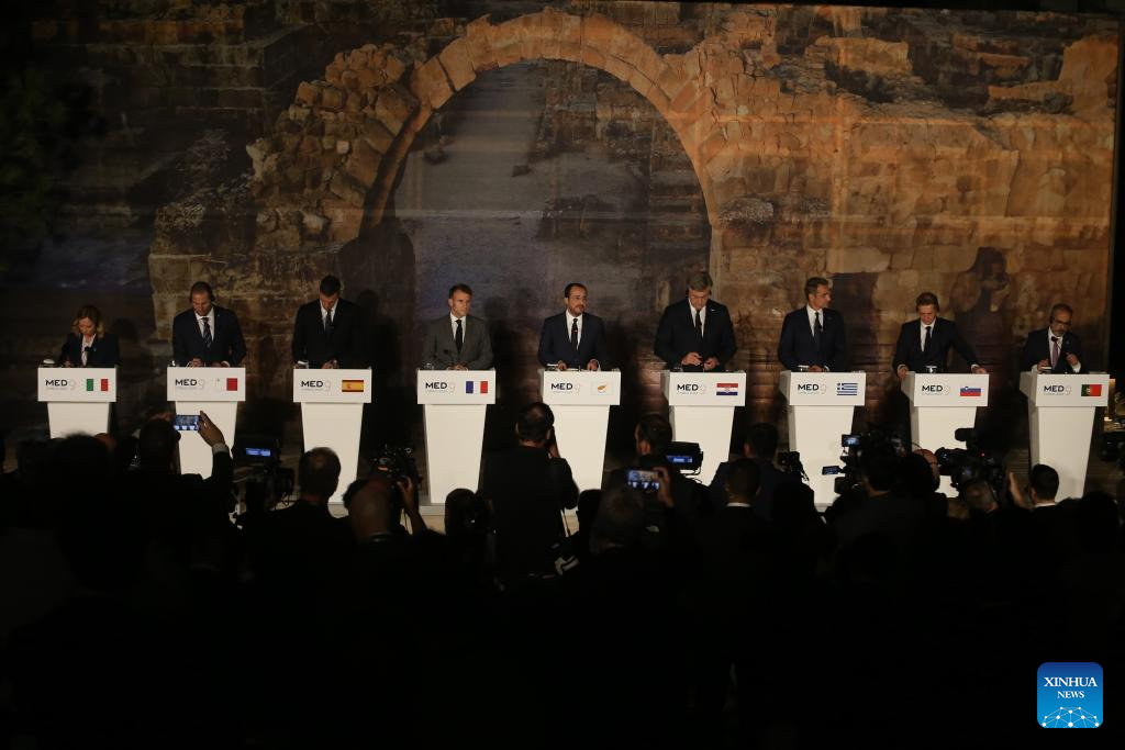 NICOSIA, Oct. 11 (Xinhua) -- The leaders of the nine Mediterranean European Union (EU) countries, known as Med9, called for an immediate ceasefire in the Middle East and urged a resumption of diplomatic efforts to address the region's ongoing conflicts during their summit on Friday.