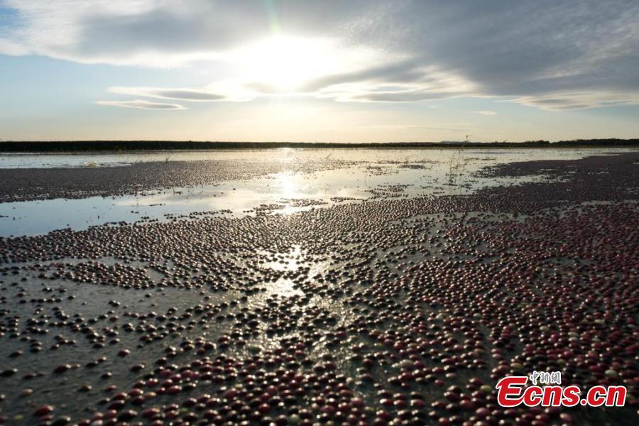 Aerial view of a cranberry field in Fuyuan, northeast China's Heilongjiang Province, Oct. 11, 2024. (Photo: China News Service/Mao Jianjun)