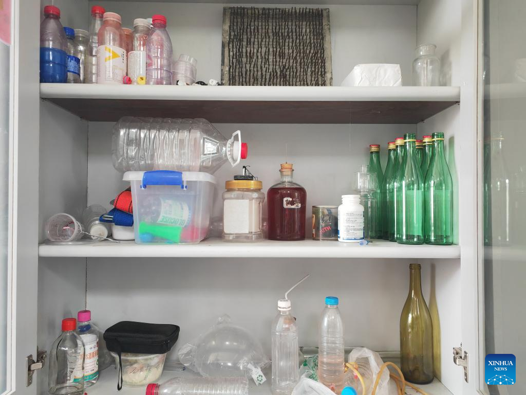 This photo taken on Sept. 4, 2024 shows the experimental devices improvised by Hu Yongxiang with discarded materials in Wuzhong City of northwest China's Ningxia Hui Autonomous Region. (Xinhua/Ai Fumei)