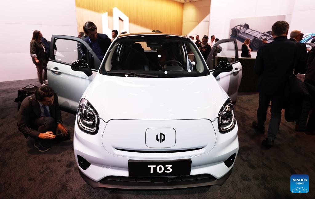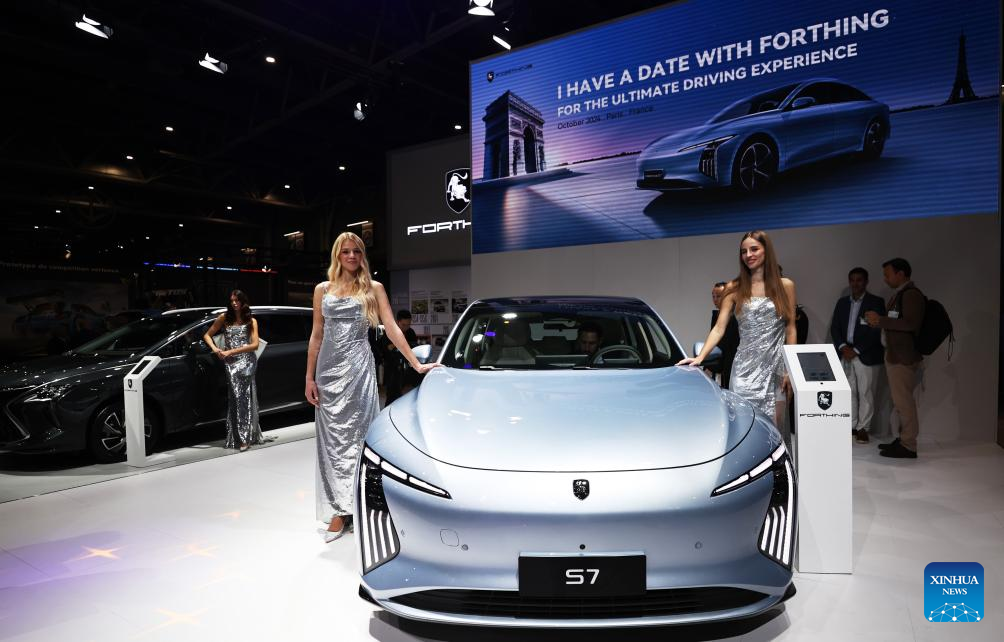 People visit the pavilion of Chinese carmaker Dongfeng Forthing at the 2024 Paris Motor Show during the media day in Paris, France, Oct. 14, 2024. (Xinhua/Gao Jing)